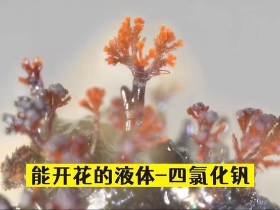 这就是四氯化钒——一个既神秘又实用的化学物质。从工业生产到科学研究,它都扮演着不可或缺的角色。最后的最后,附一张美丽的图片,是四氯化钒接触空气后生成的花朵,神奇不神奇,赶紧点点赞吧。