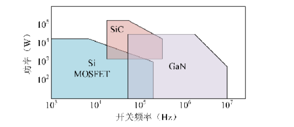 图 3 不同半导体材料功率器件功率等级以及开关频率应用工况,图片来源:付亿元.基于第三代半导体的大功率高功率密度开关电源关键技术研究.华中科技大学。