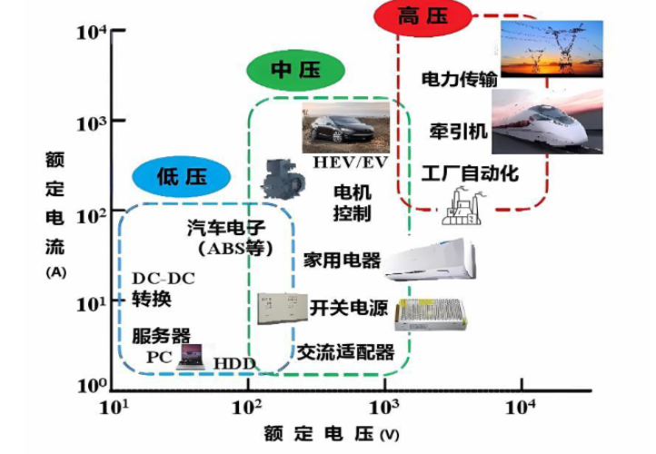 图 2 功率半导体下游应用领域示意图,图片来源:邵方格.SiC GTO器件的驱动设计与优化.浙江大学,2023.
